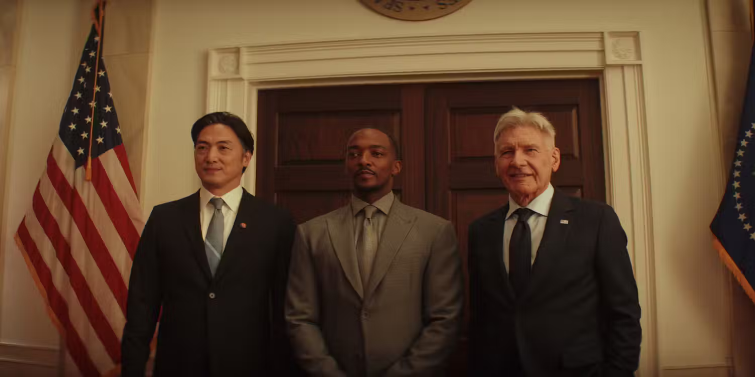 After struggling with whether or not he would take on the mantle of Captain America, in “Captain America: Brave New World” we see Sam given his first chance to show the world and himself that he truly is a worthy successor to Steve Rogers as he faces threats both seen and unseen in an intense and action packed film. After meeting with newly elected U.S. President Thaddeus “Thunderbolt” Ross, played by Harrison Ford in his Marvel Cinematic Universe debut who steps into the role following the passing of William Hurt in 2022. Ross as you may remember was responsible for arresting Sam and his fellow Avengers during the events of “Captain America: Civil War”. In the trailer we see Ross and Sam meet at a White House meeting where he mentions his eagerness to make make Captain America an official military personell.